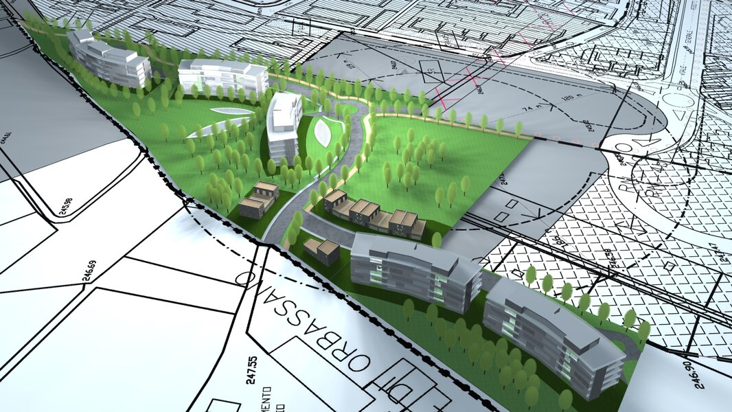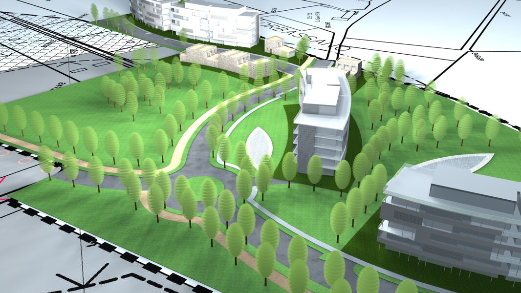 2 piani fuori terra, nuova viabilità di connessione e parco pubblico.